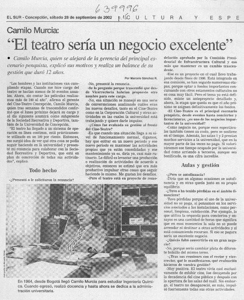 "El teatro sería un negocio excelente" [artículo] Marcelo Sánchez R.