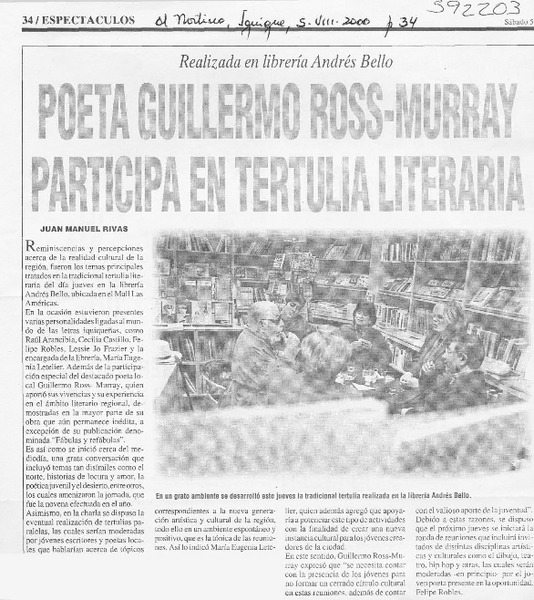 Poeta Guillermo Ross-Murray participa en tertulia literaria [artículo] Juan Manuel Rivas