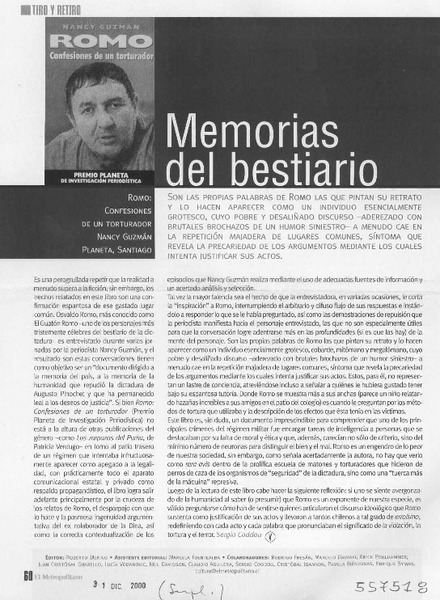 Autores chilenos - Guzmán, Nancy - Romo, confesiones de un torturador