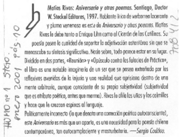 Aniversario y otros poemas - Rivas, Matías - Autores chilenos