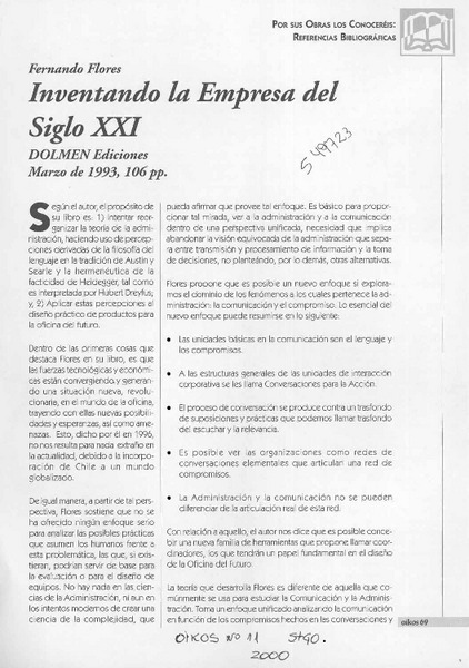 Autores chilenos - Flores, Fernando - Inventando la empresa del siglo XXI