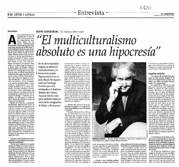 El multiculturalismo absoluto es una hipocresía" [artículo] Oscar Contardo.