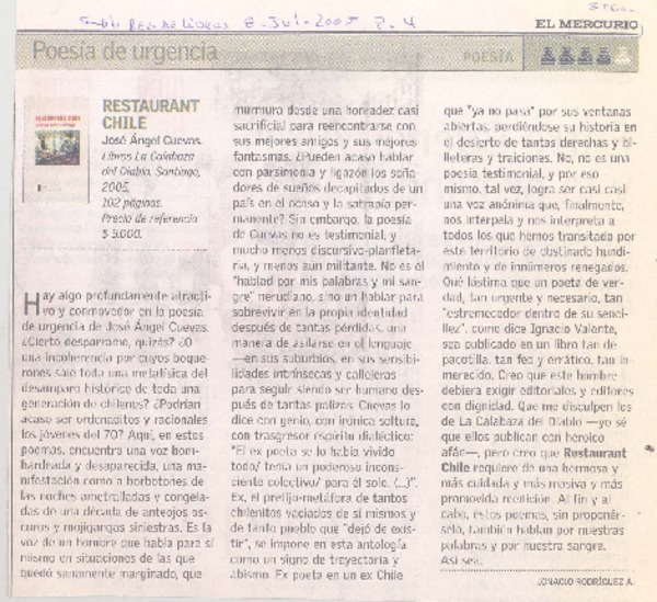 Poesía de urgencia [artículo] Ignacio Rodriguez A.