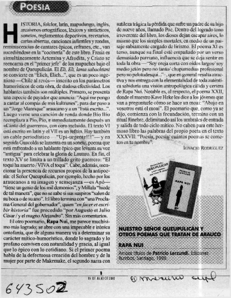 Nuestro señor Queupulicán y otros poemas que tratan de Arauco [artículo] Ignacio Rodríguez