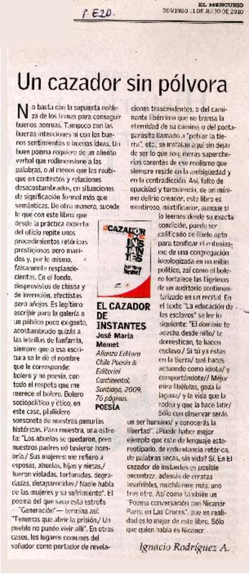 Un cazador sin pólvora [artículo] Ignacio Rodríguez A.