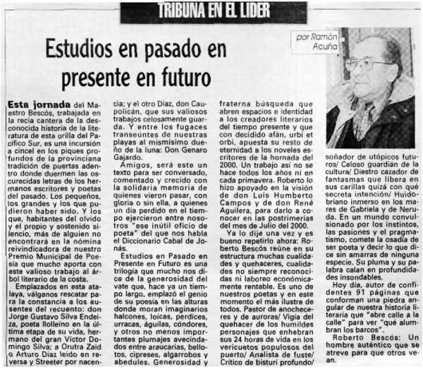 El mundo de la cultura está en deuda con Roberto Bescós [artículo] Ramón Acuña Carrasco.