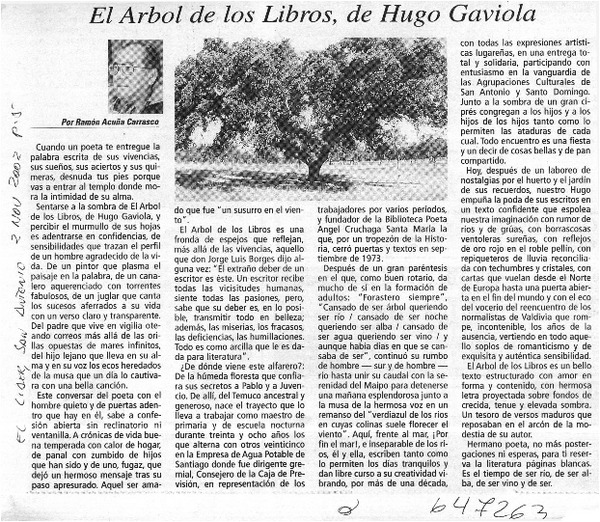 El Árbol de los libros, de Hugo Gaviola [artículo] Ramón Acuña Carrasco