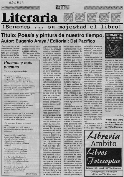 Autores chilenos - Araya, Eugenio - Poesía y pintura de nuestro tiempo