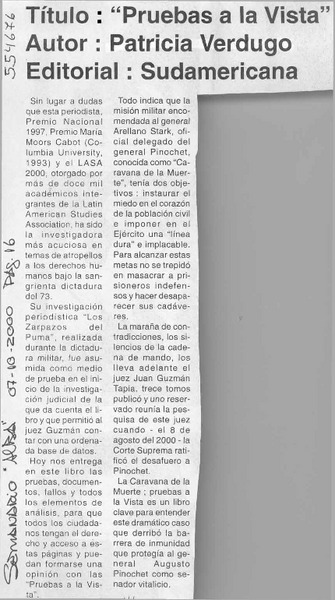 Autores chilenos - Verdugo, Patricia - Pruebas a la Vista