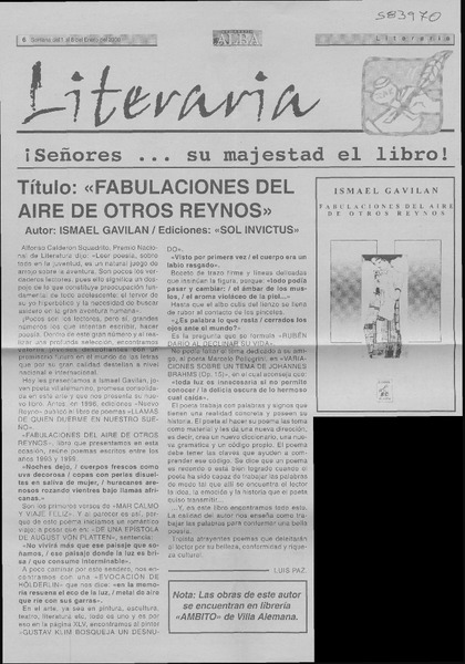 Fabulaciones del aire de otros reynos [artículo] Luis Paz