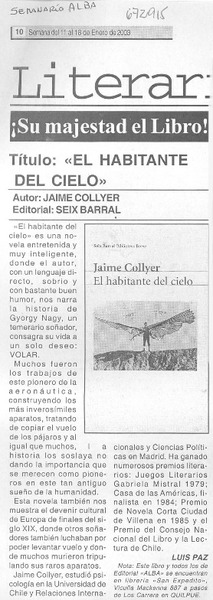 Autores chilenos - Collyer, Jaime - Habitante del cielo