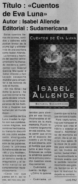 Autoras chilenas - Allende, Isabel - Cuentos de Eva Luna