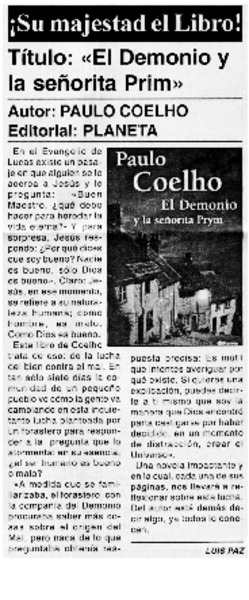 El demonio y la señorita Prym [artículo] Luis Paz.