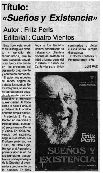 Autores alemanes - Perls, Fritz S. - Sueños y existencia