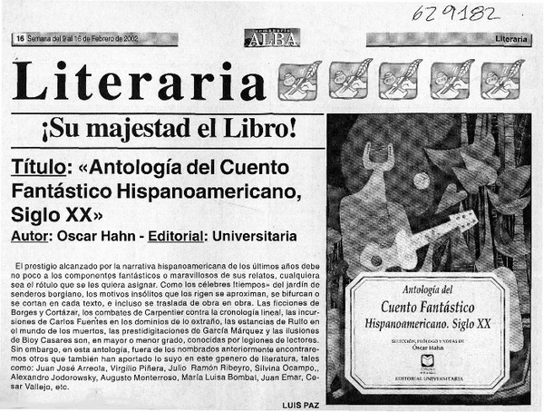 "Antología del cuento fantástico hispanoamericano, siglo XX" [artículo] Luis Paz