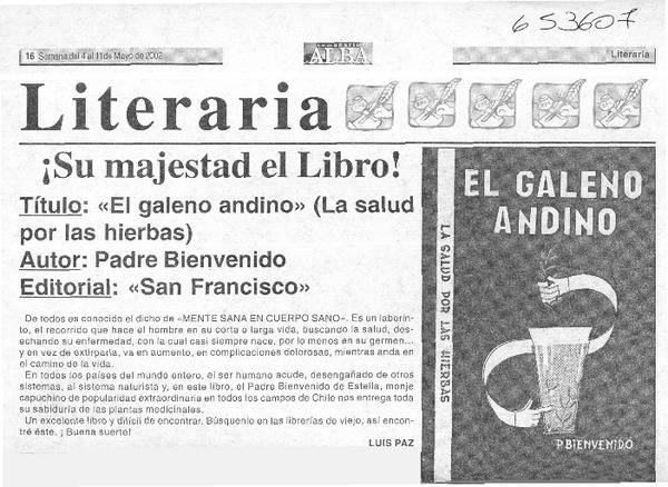 "El galeano andino" (La salud por las hierbas) [artículo] Luis Paz