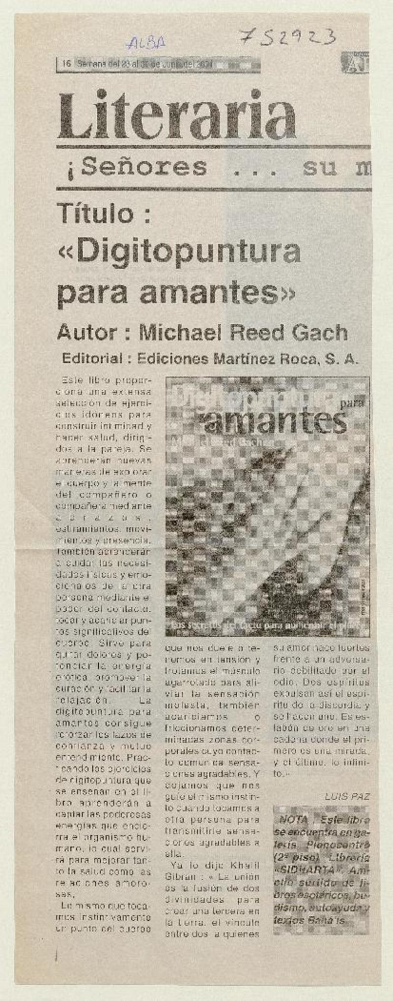 Digitopuntura para amantes" [artículo] Luis Paz.