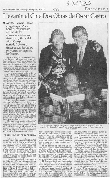 LLevarán al cine dos obras de Oscar Castro [artículo] Joel Poblete