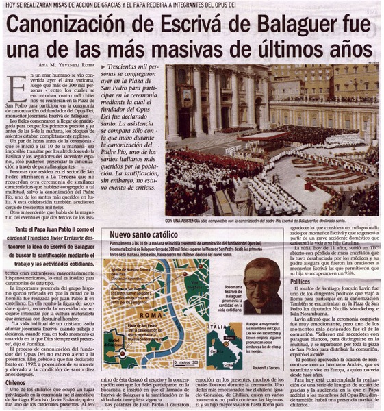 Canonización de Escrivá de Balaguer fue una de las más masivas de últimos años [artículo] Ana M. Yévenes.
