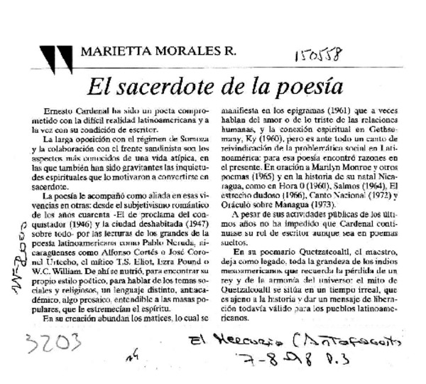El sacerdote de la poesía [artículo] Marietta Morales R.