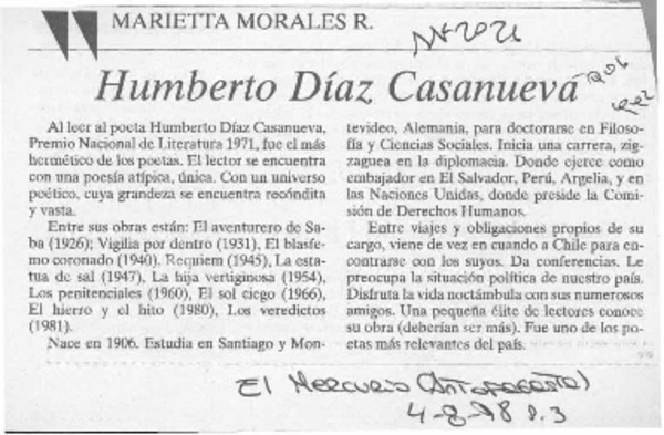 Humberto Díaz Casanueva [artículo] Marietta Morales R.