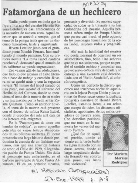 Fatamorgana de un hechicero [artículo] Marietta Morales Rodríguez.