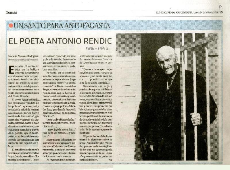 El poeta Antonio Rendic [artículo] Marietta Morales Rodríguez.