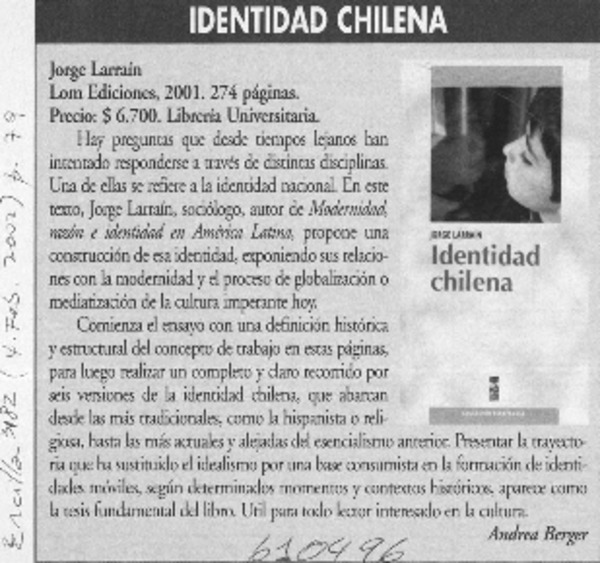 Autores chilenos - Larraín, Jorge - Identidad chilena