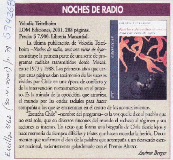 Autores chilenos - Teitelboim, Volodia - Noches de radio