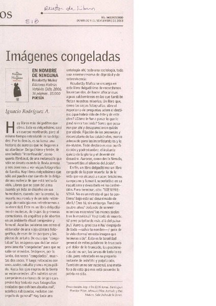 Imágenes congeladas [artículo] Ignacio Rodríguez A.