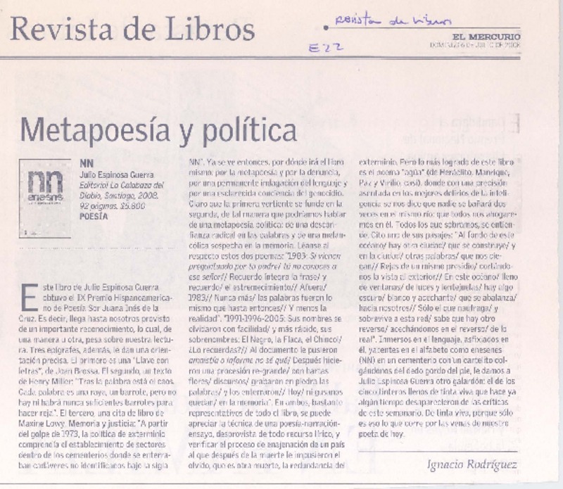 Metapoesía y política [artículo] Ignacio Rodríguez.
