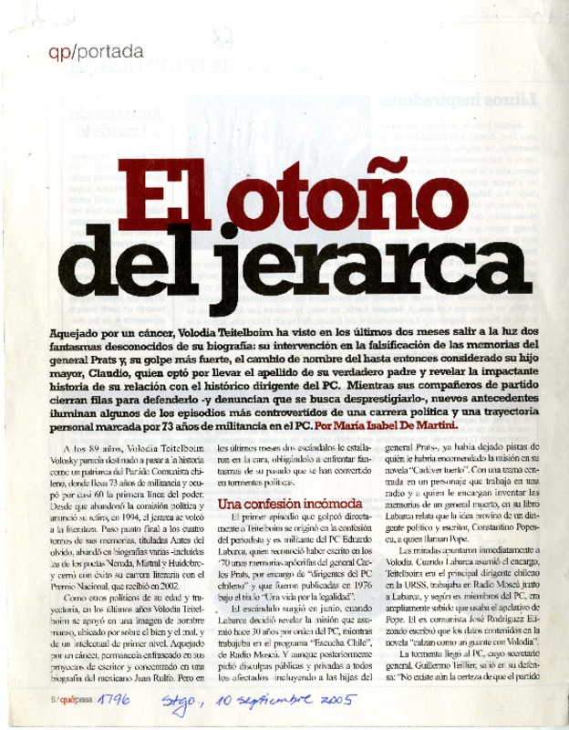 El Otoño del jerarca. [artículo] María Isabel de Martini