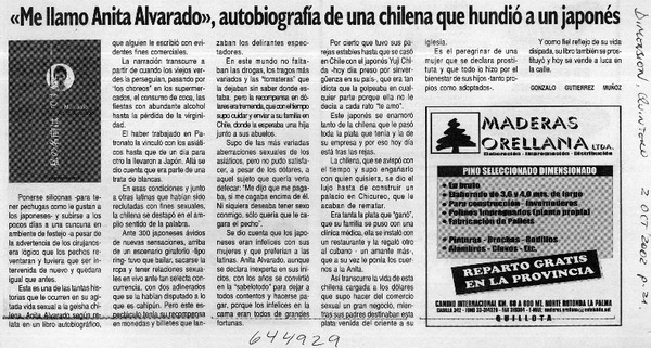 "Me llamo Anita Alvarado", autobiografía de una chilena que hundió a un japonés [artículo] Gonzalo Gutiérrez Muñoz