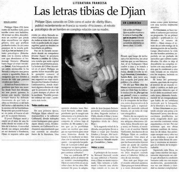 Las Letras tibias de Djian [artículo] Nicolás Lasnibat.