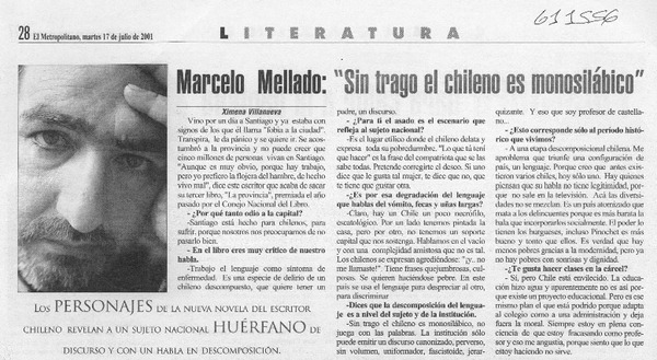 Marcelo Mellado, "sin trago el chileno monosilábico" [artículo] Ximena Villanueva