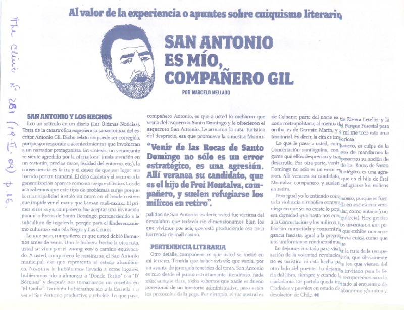 San Antonio es mío, compañero Gil [artículo] Marcelo Mellado.