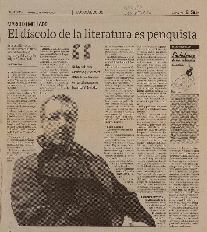 El díscolo de la literatura es penquista (entrevista) [artículo]Fernando Cea.