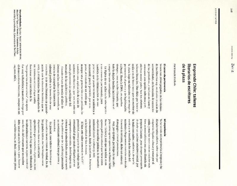 Emprende Chile: talleres literarios de escritores de la plaza [artículo] Marcelo Mellado