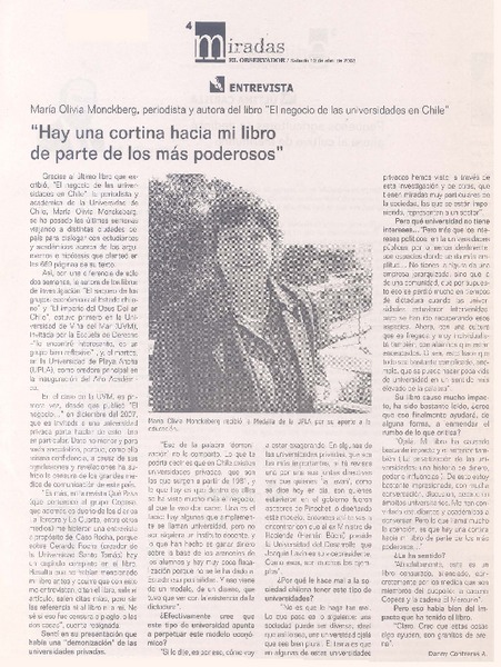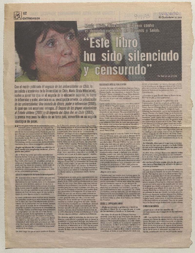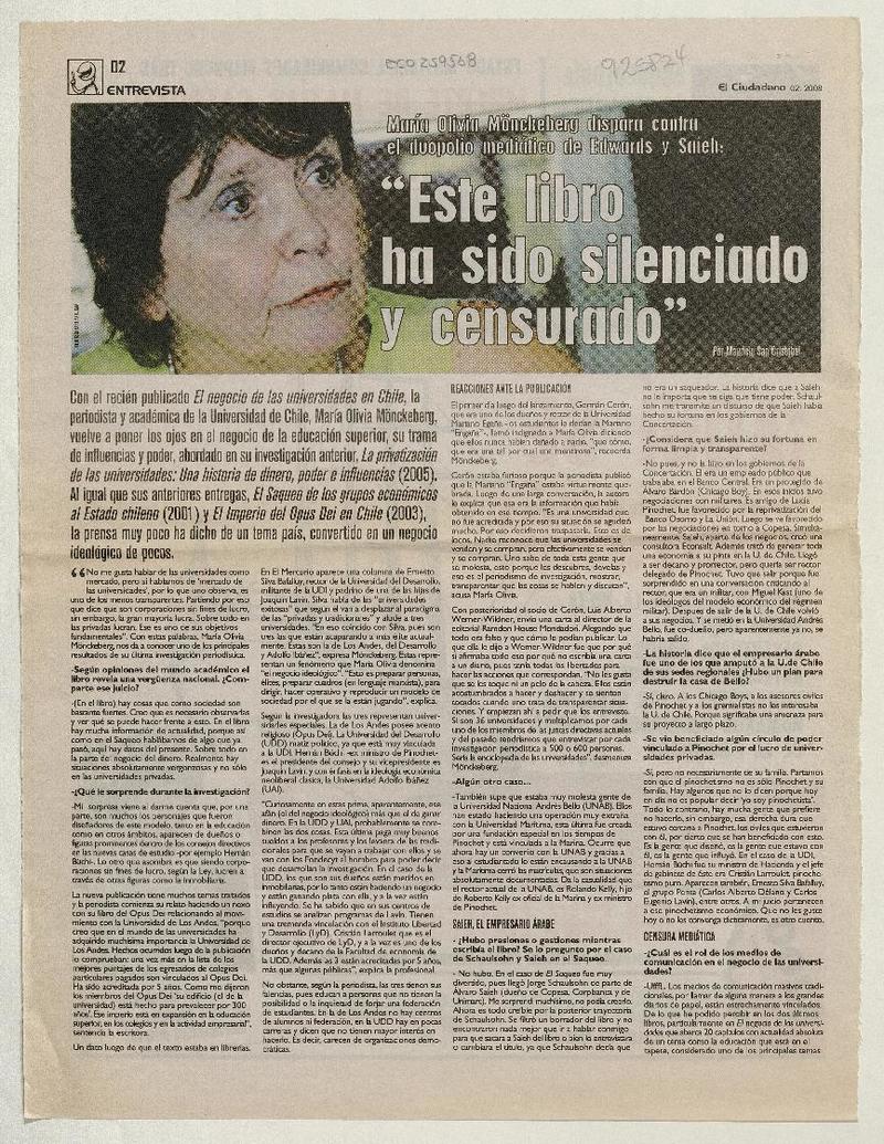 Autores chilenos - Negocio de las universidades en Chile - Monckeberg, María Olivia - Entrevistas