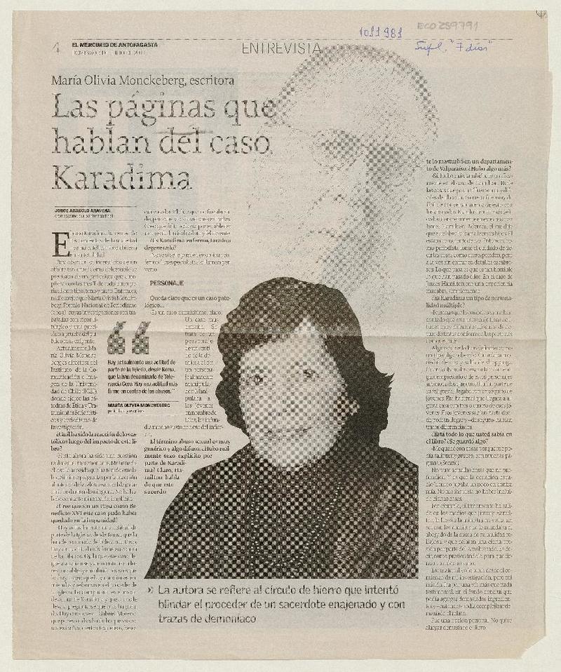 Autoras chilenas - Karadima, el señor de los infiernos - Monckeberg, María Olivia - Entrevistas