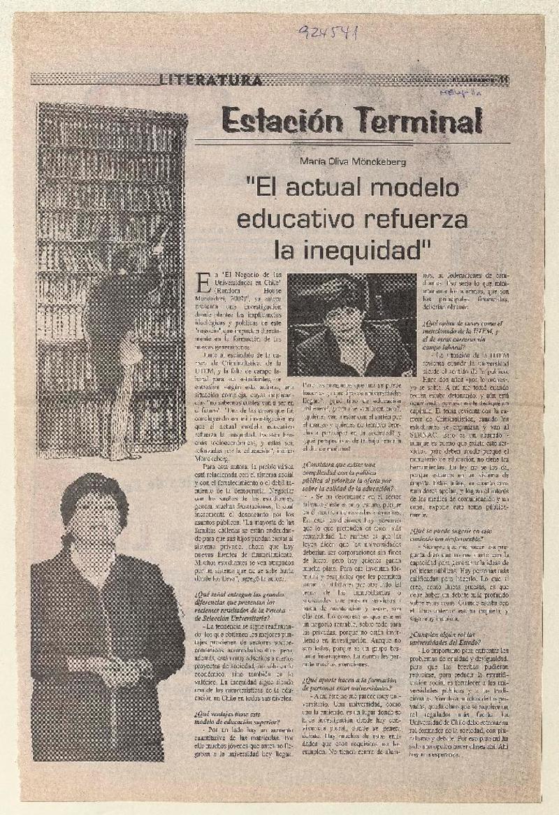 "El Actual modelo educativo refuerza la inequidad" [entrevista]. [artículo] :