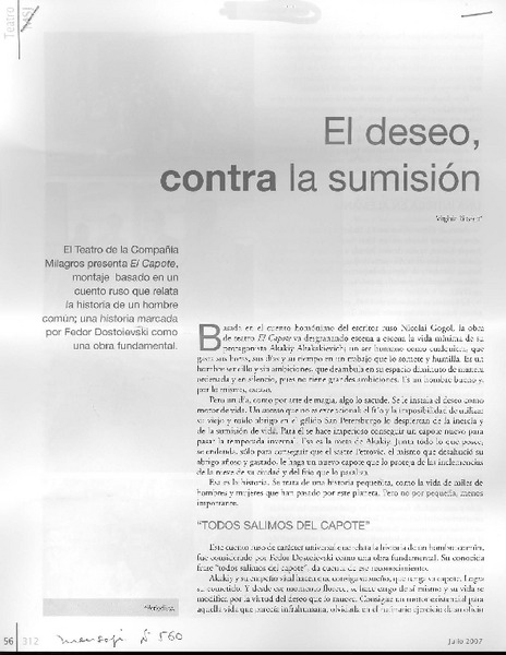 El Capote - Compañía Teatro Milagros (Chile) - Gogol, Nikolai Vasilievich