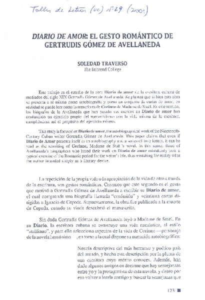 Diario de amor: el gesto romántico de Gertrudis Gómez de Avellaneda [artículo] Soledad Traverso.