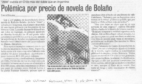 Polémica por precio de novela de Bolaño [artículo] Carlos Vergara