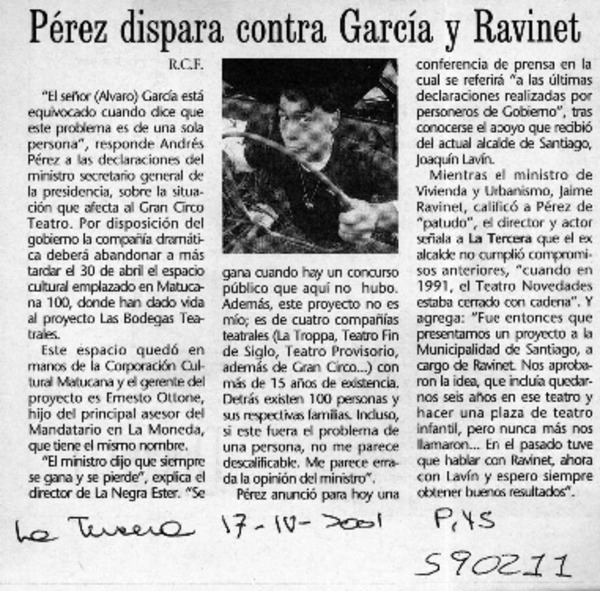 Pérez dispara contra García y Ravinet [artículo] R. C. F.