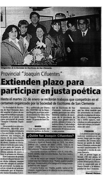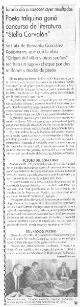 Poeta talquino ganó concurso de literatura "Stella Corvalán" [artículo] Manuel Herrera.