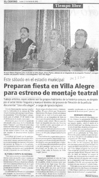 Preparan fiesta en Villa Alegre para estreno de montaje teatral [artículo] Manuel Herrera.