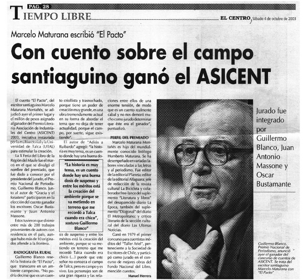 Con cuento sobre el campo santiaguino ganó el ASICENT [artículo] Manuel Herrera.