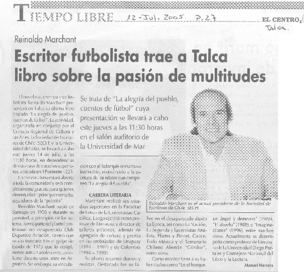 Escritor futbolista trae a Talca libro sobre la pasión de multitudes [artículo]Manuel Herrera.