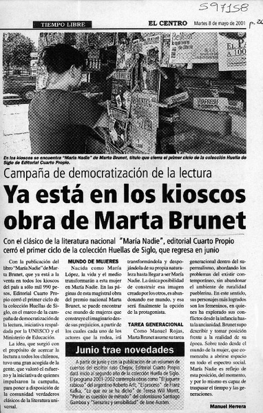Llevan a las tablas novela de escritora María Luisa Bombal. [artículo] Manuel Herrera